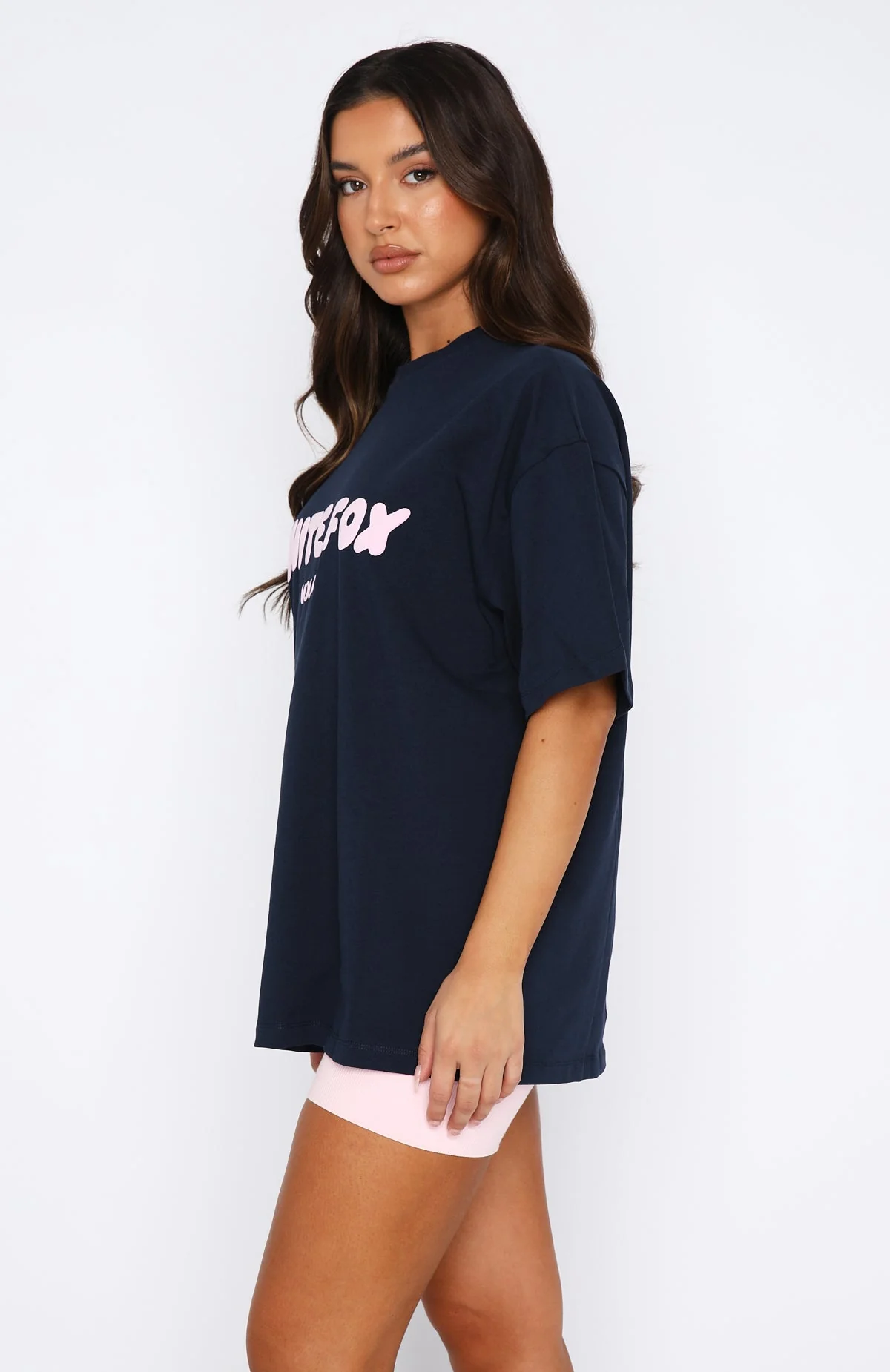 No need to steal your boyfriend's clothes when you have the Limited Edition Offstage Oversized Tee Sapphire. It is an oversized fit with slouch shoulders, round neckline, and a puff print graphic centre front. Match with the Offstage Lounge Shorts or Sweatpants! We also love this paired with your favourite White fox denim and fresh kicks.